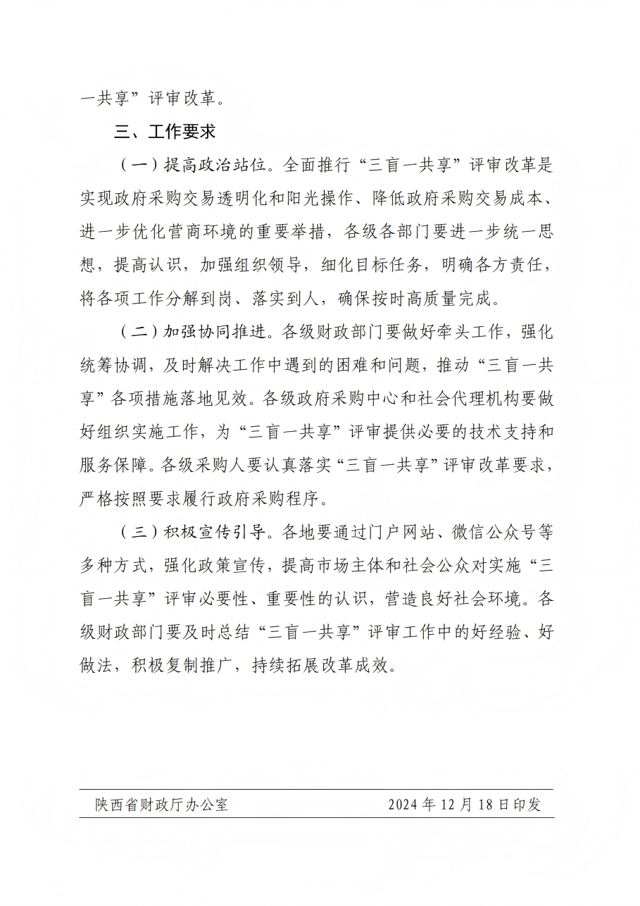 關(guān)于印發(fā)《陜西省政府采購領(lǐng)域“三盲一共享”評審實(shí)施方案》的通知
